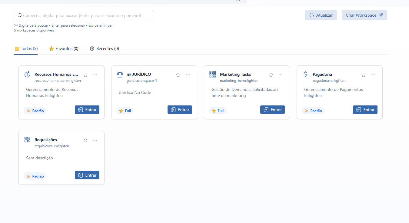 Um workspace para cada contexto do seu negócio. Clareza e organização sem misturar áreas, dados ou processos.